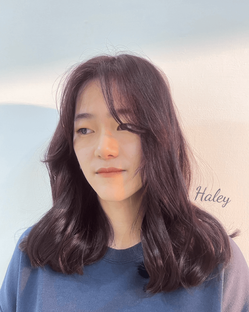 樹莓紫紅-韓系三七側分髮型,低調中不失高級感。